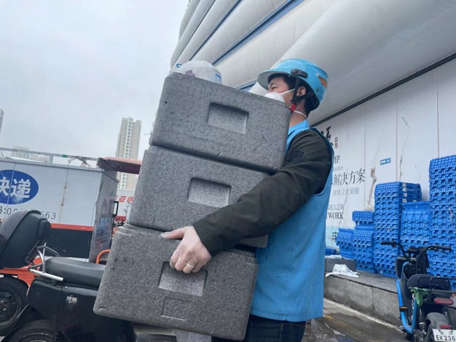 “临时管控区的线上订单增长明显,顾客单次购买商品数量也是过去的好几倍,除了菜肉蛋奶等,最近鲜花、小龙虾销量也有明显的增长。”盒马十里河店长表示。运送效率大大提高。在运力上,也会根据社区状态向临时管控小区倾斜。”盒马十里河店配送员介绍,一辆车就能送一个小区的订单。拣货、分装、消杀、打包等多个环节也都提高了服务能力和效率。