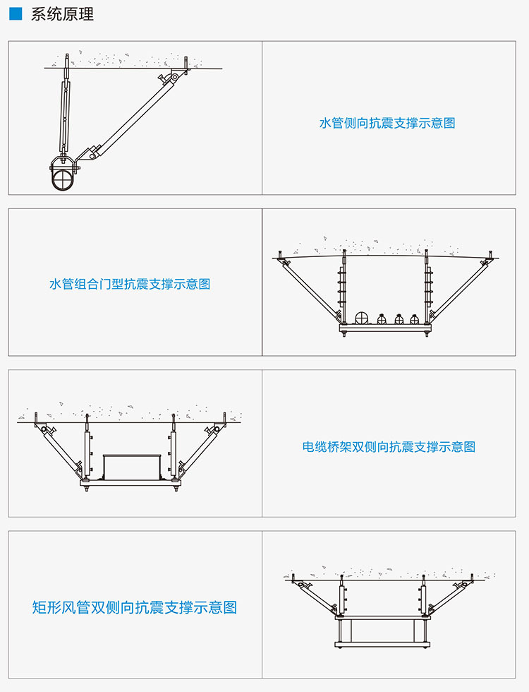 建筑机电抗震,指的是管道、风道、电缆桥架等机电设施的设计抗震。在国家标准颁布之前对于机电设施的保护,沿用的都是承重支撑系统,主要起到承重的作用,基本上是没有考虑设计给系统安全带来很大的隐患。而《建筑机电工程抗震设计规范》所列明应采取的措施技术,则定义为抗震支撑系统;以荷载力学为基础,将管道、风道、电缆桥架等机电设施牢固的连接于已做抗震设计的建筑体,限制附属机电工程设施产生位移,控制设施振动并将荷载传递至承载结构上的各类组件或装置。其抗震支撑的主要目的就是安全,即把地震所造成的生命与财产损失减少到最低程度。通俗地来讲,这类产品我们又称之为抗震支吊架。