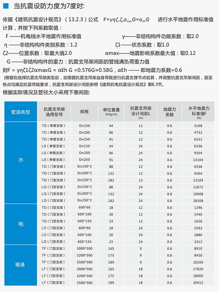 根据建筑结构形式、管道荷载进行抗震支吊架选型