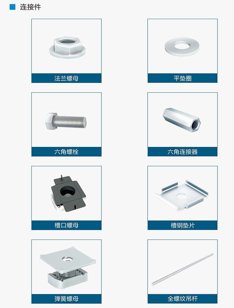 无需焊接,模块化配件设计,可任意搭配组装成各种形式的支吊架系统。
